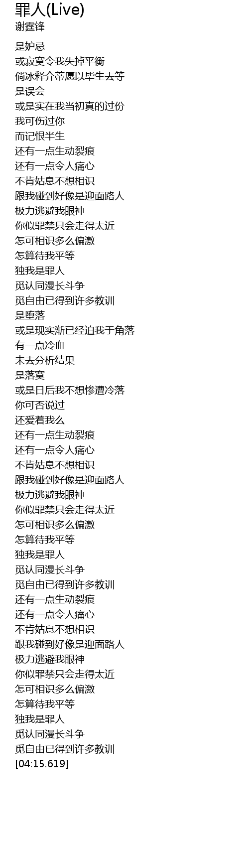| [01:32.377] | 你似罪禁只会走得太近 |