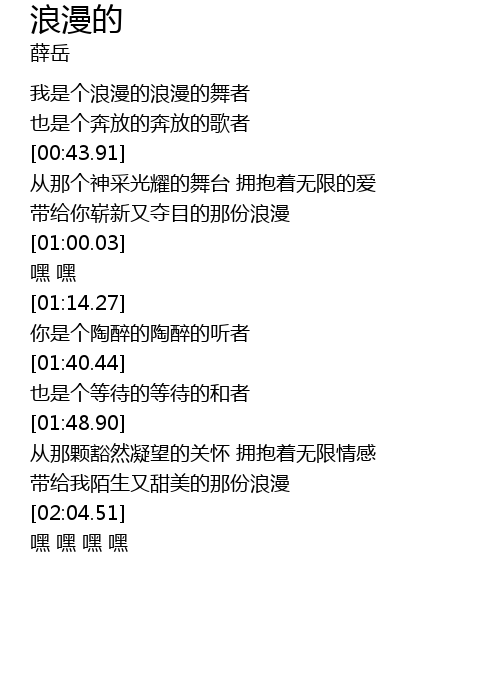 | [00:32.61] | 我是个浪漫的浪漫的舞者 |