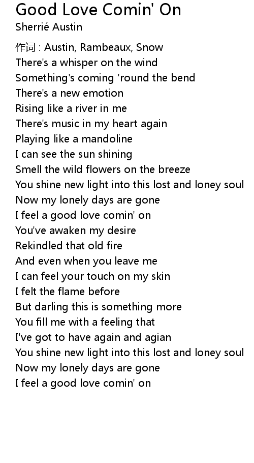 | I feel a good love comin' on |
