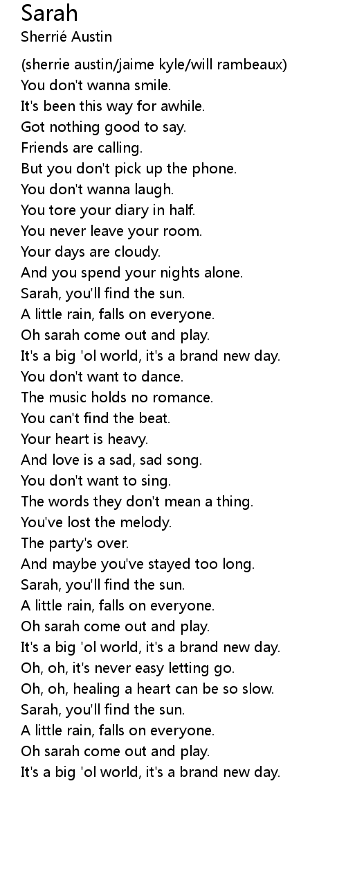 Oh sarah come out and play. |