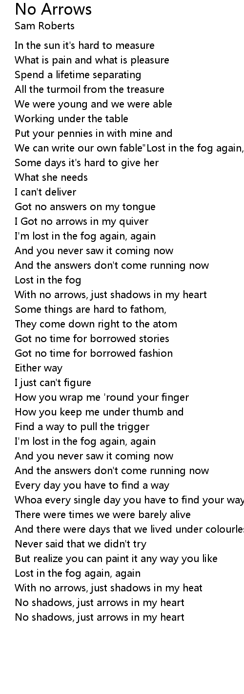 No shadows, just arrows in my heart |