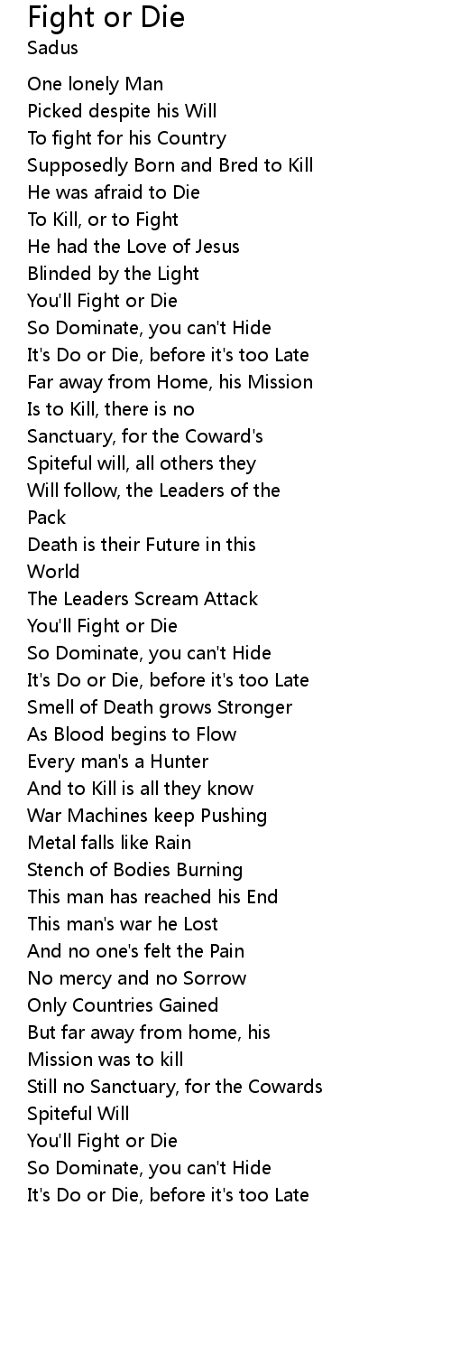 | You'll Fight or Die | |