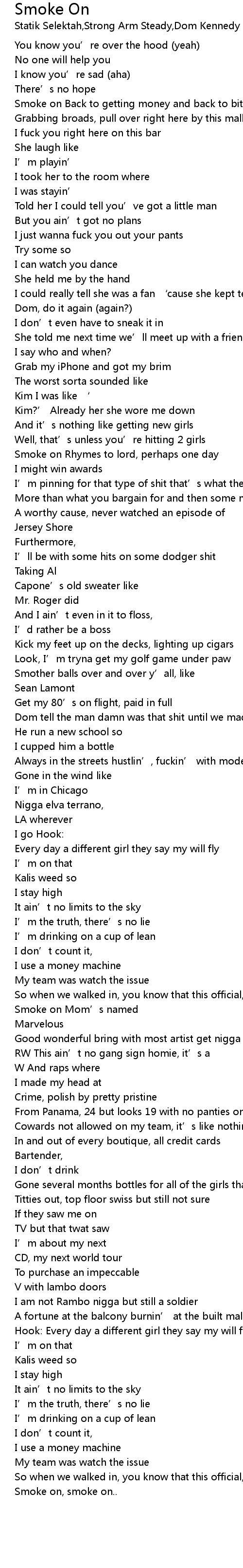 | Song | Smoke On |