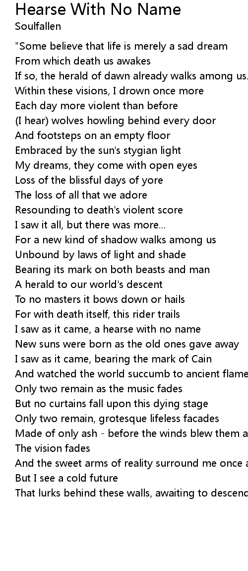 I saw as it came, a hearse with no name |