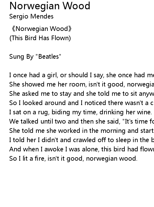 | She showed me her room, isn' t it good, norwegian wood? | |