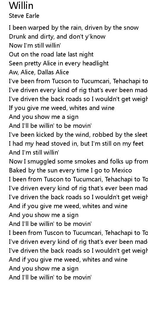 Now I'm still willin' |