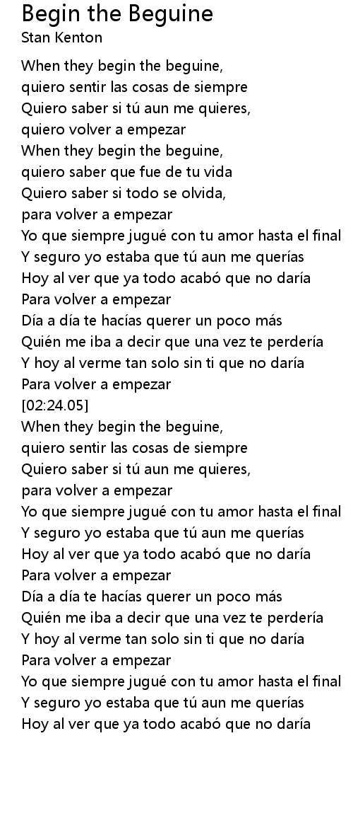 | [02:37.24] | When they begin the beguine, |