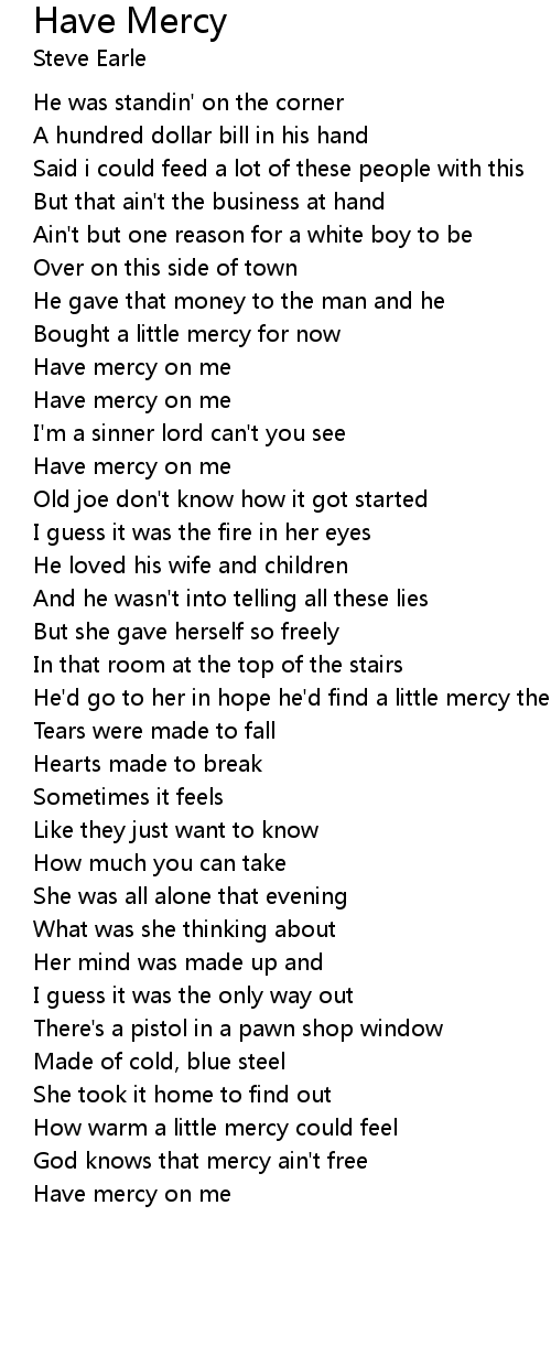 He'd go to her in hope he'd find a little mercy there |