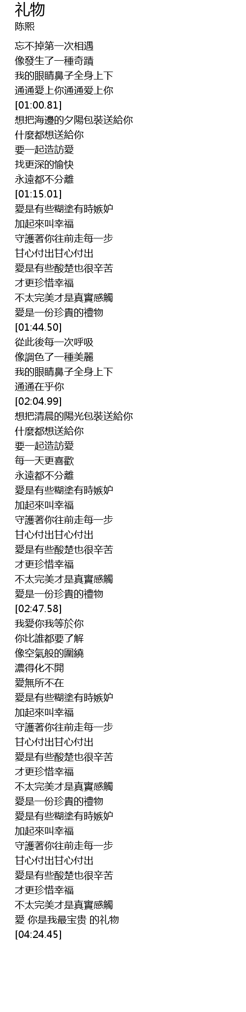 | [03:41.23] | 愛是一份珍貴的禮物 |