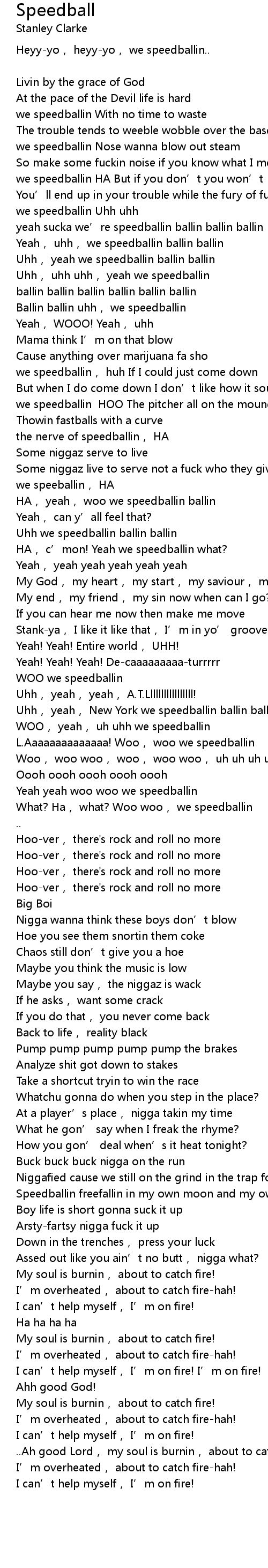| Heyy-yo, heyy-yo, we speedballin.. | |