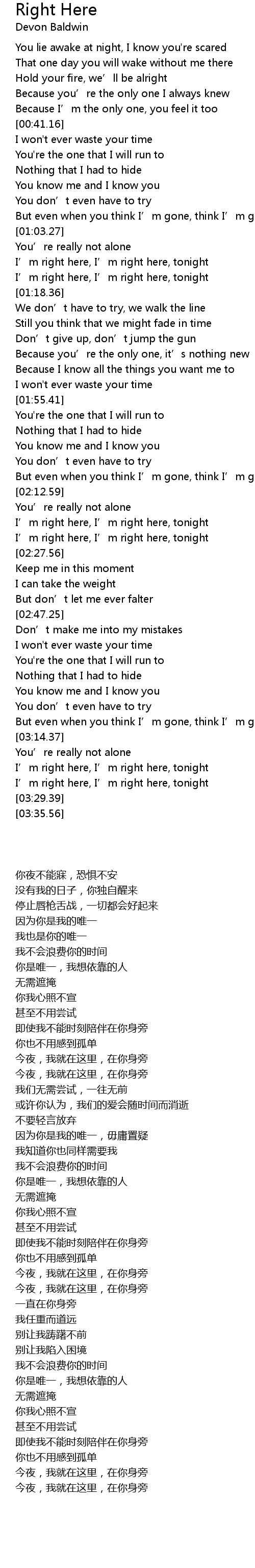 | [03:18.58] | I’m right here, I’m right here, tonight |