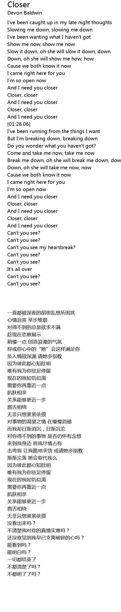 And I need you closer |
