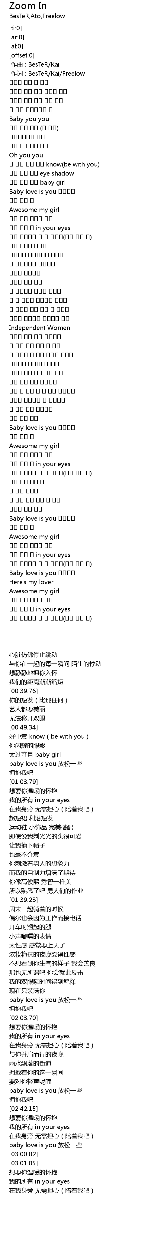 | [00:01.00] | zuò cí : BesTeR Kai Freelow |