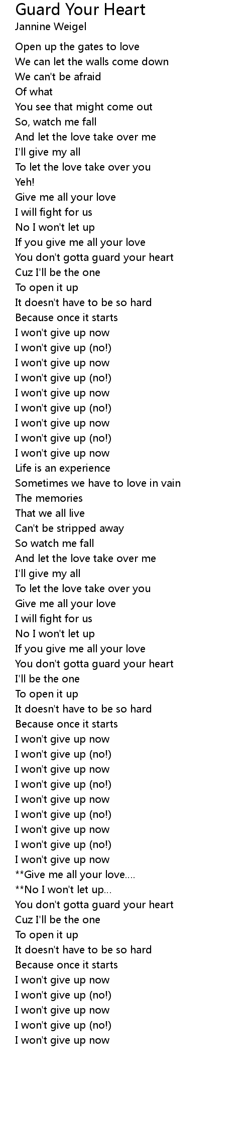 | You don' t gotta guard your heart | |