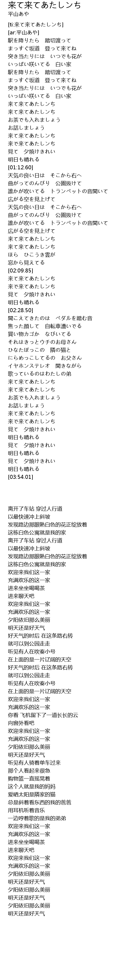 | [00:41.52] | 来て来てあたしンち |