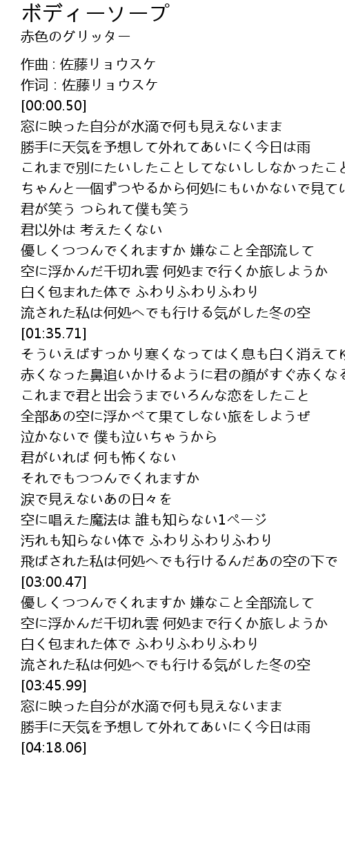 | [02:43.88] | 汚れも知らない体で ふわりふわりふわり |