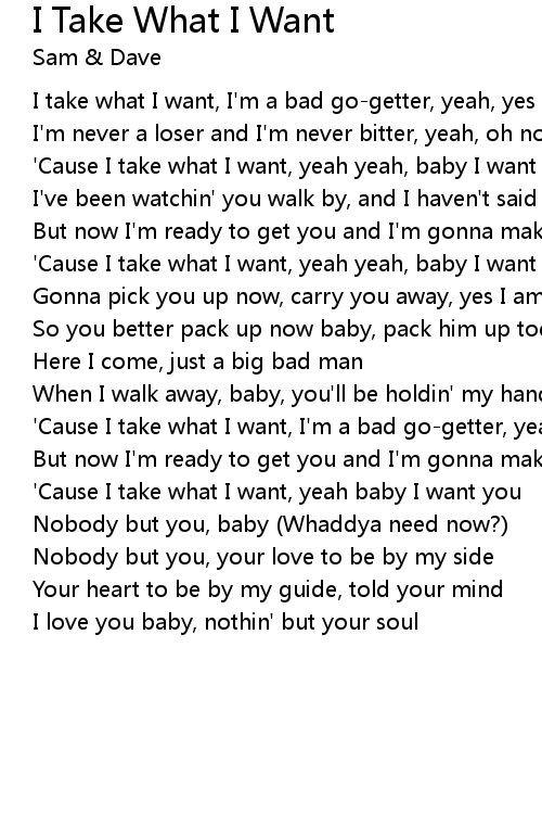 'Cause I take what I want, yeah yeah, baby I want you, yes, you |