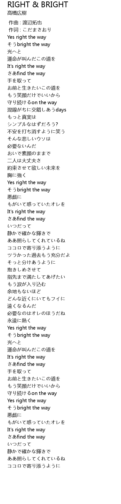 | [00:10.18] | そうbright the way |