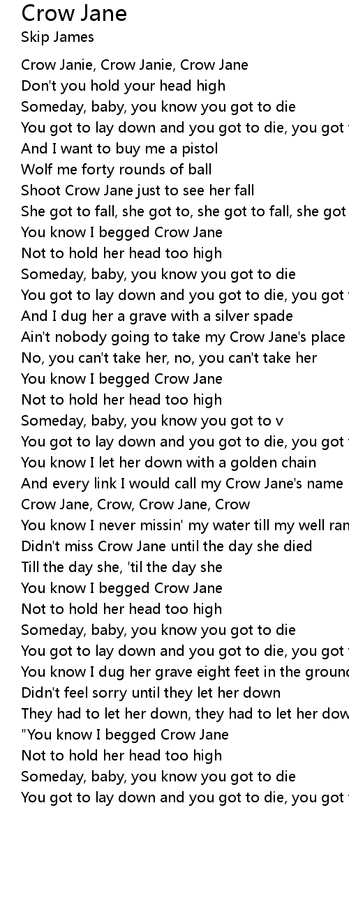 Crow Jane, Crow, Crow Jane, Crow |