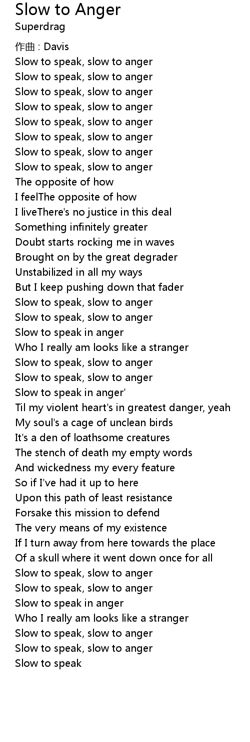 | Song | Slow to Anger |