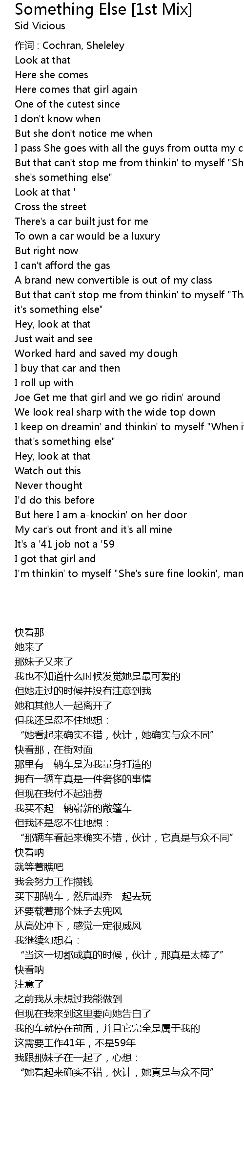 | I' m thinkin' to myself " She' s sure fine lookin', man, well she' s something else" |