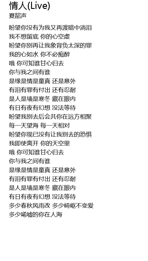 | pàn wàng nǐ méi yǒu wéi wǒ yòu zài dù àn zhōng tǎng lèi | |