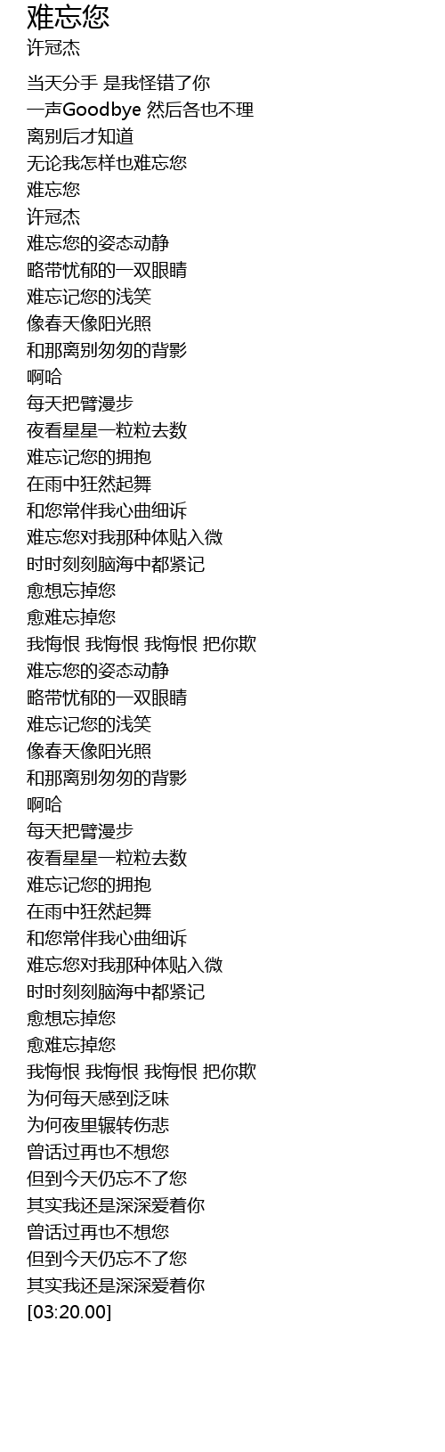 | [02:37.50] | 我悔恨 我悔恨 我悔恨 把你欺 |