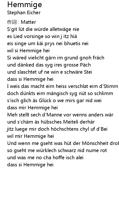 | dass si Hemmige hei | |