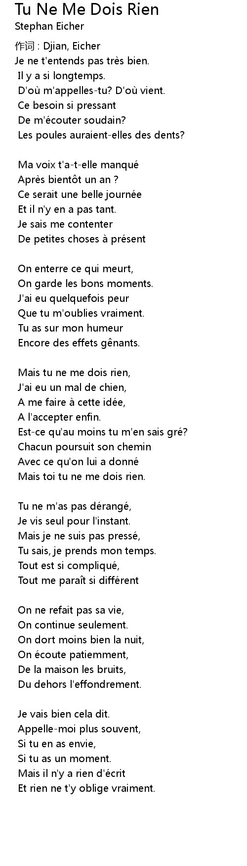 | Est-ce qu'au moins tu m'en sais gré? | |