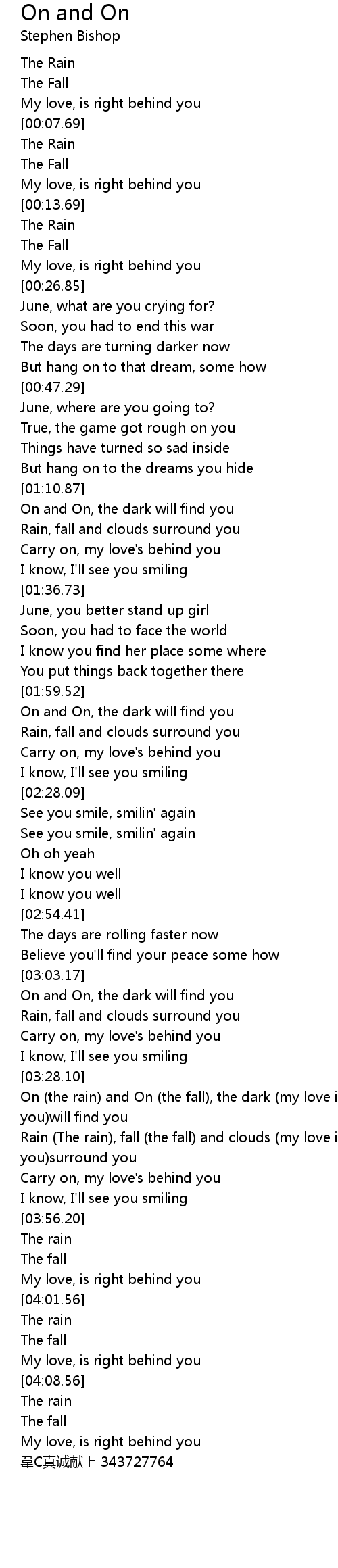 | [03:29.70] | On (the rain) and On (the fall), the dark (my love is right behind you)will find you |