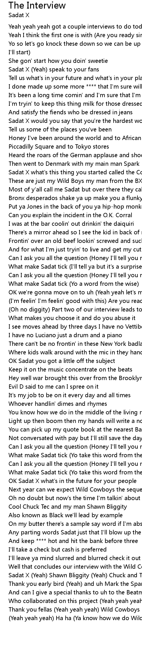 Sadat X (Yeah) Shawn Bliggity (Yeah) Chuck and Tec (Yeah yeah yeah) |