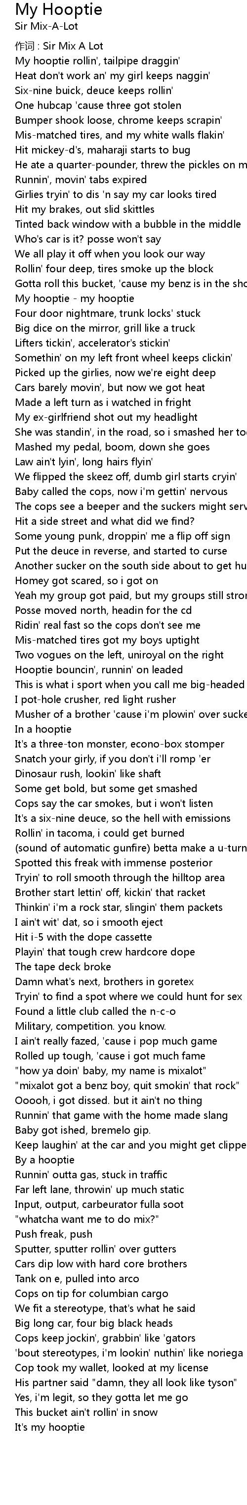 | 作词 : Sir Mix A Lot | |