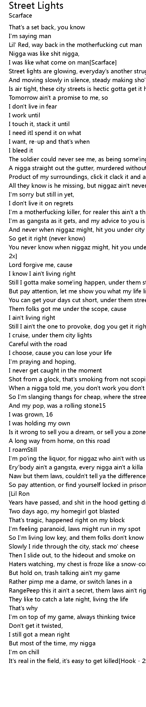 You never know when niggaz might, hit you under city lights get it right[Hook - 2x] |