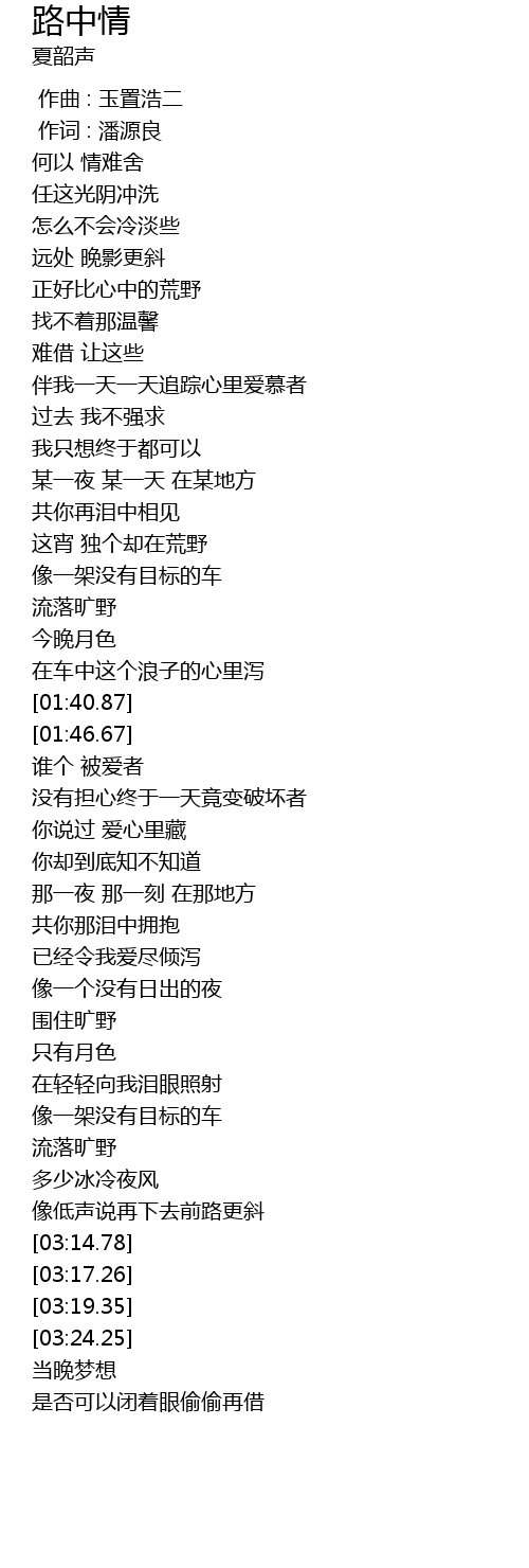 | [01:35.14] | 在车中这个浪子的心里泻 |