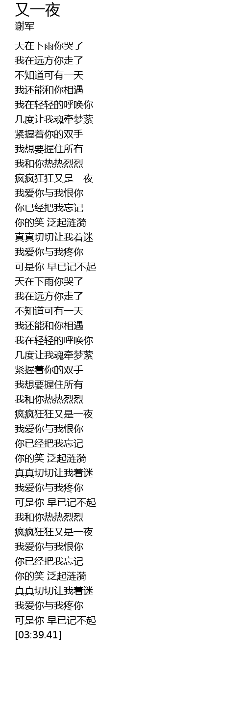 | [03:11.46] | 疯疯狂狂又是一夜 |