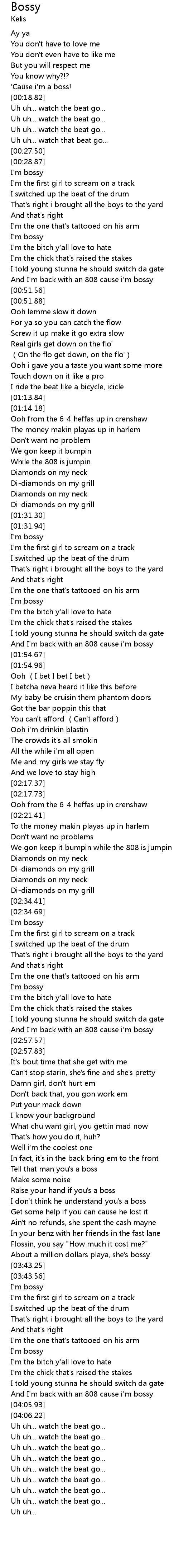| [04:02.72] | And I'm back with an 808 cause i'm bossy |