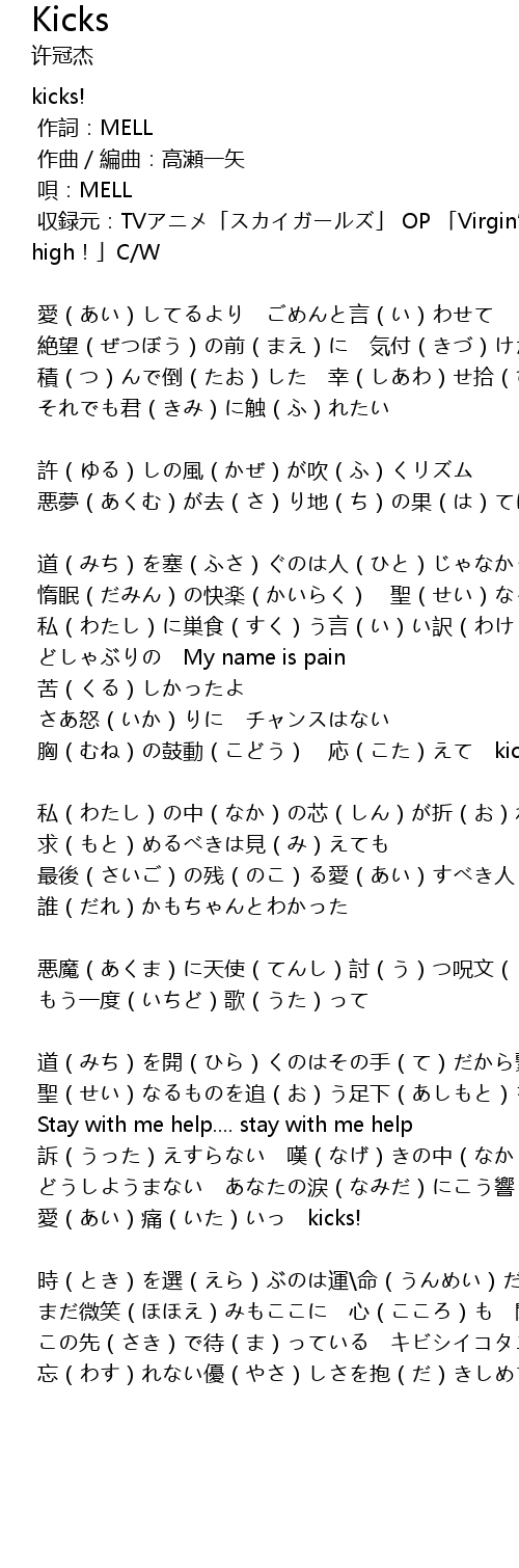 | 胸(むね)の鼓動(こどう) 応(こた)えて kicks! | |