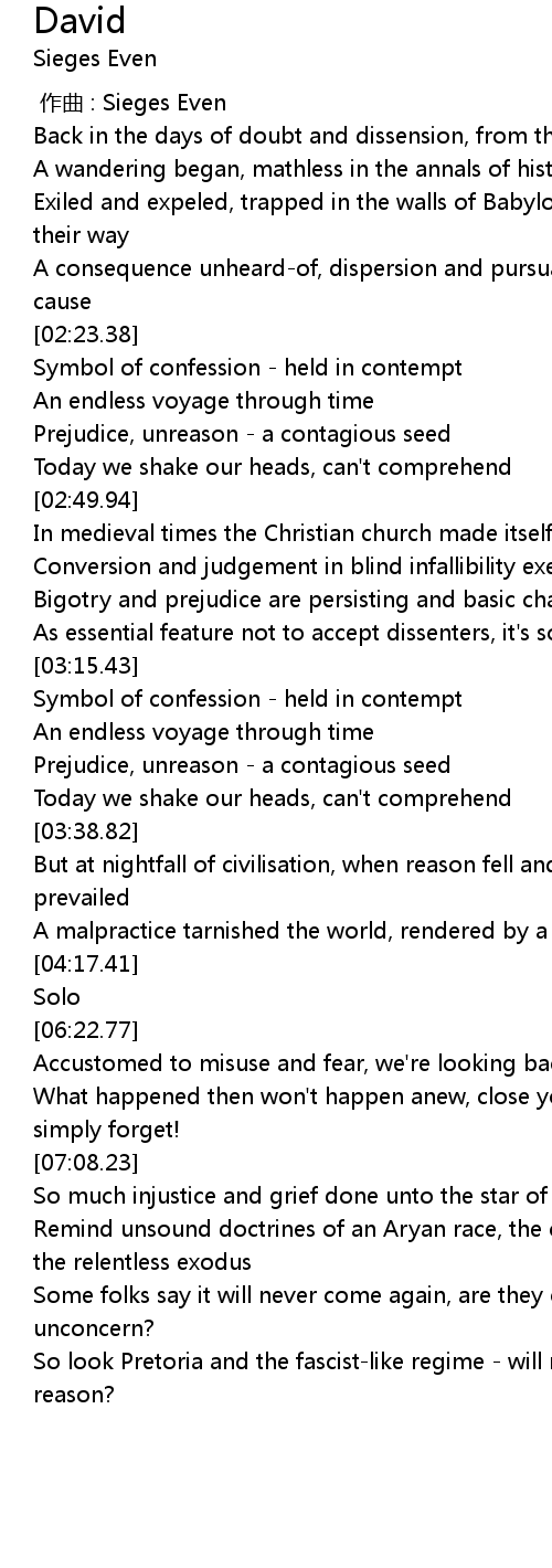 | [07:40.74] | So much injustice and grief done unto the star of David |