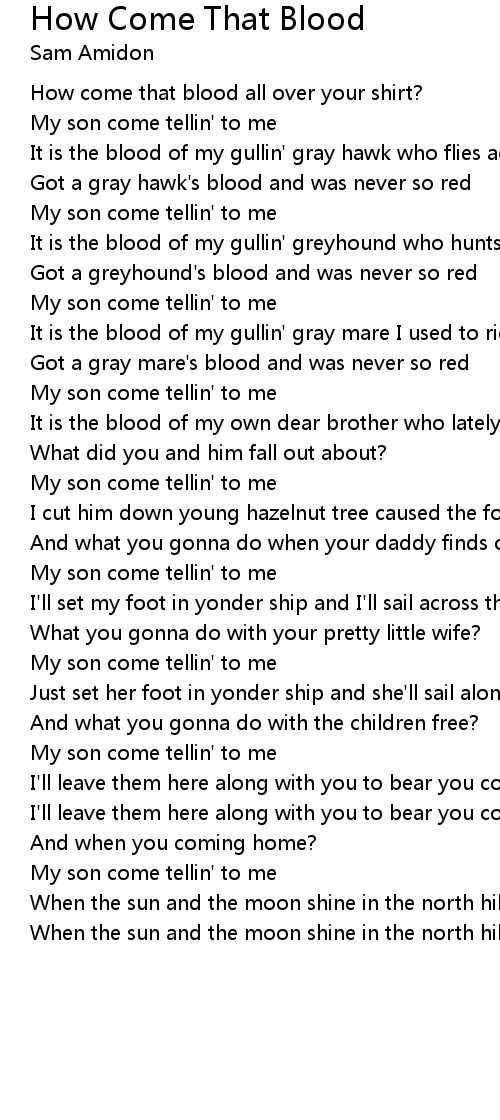 It is the blood of my gullin' gray mare I used to ride so gay |