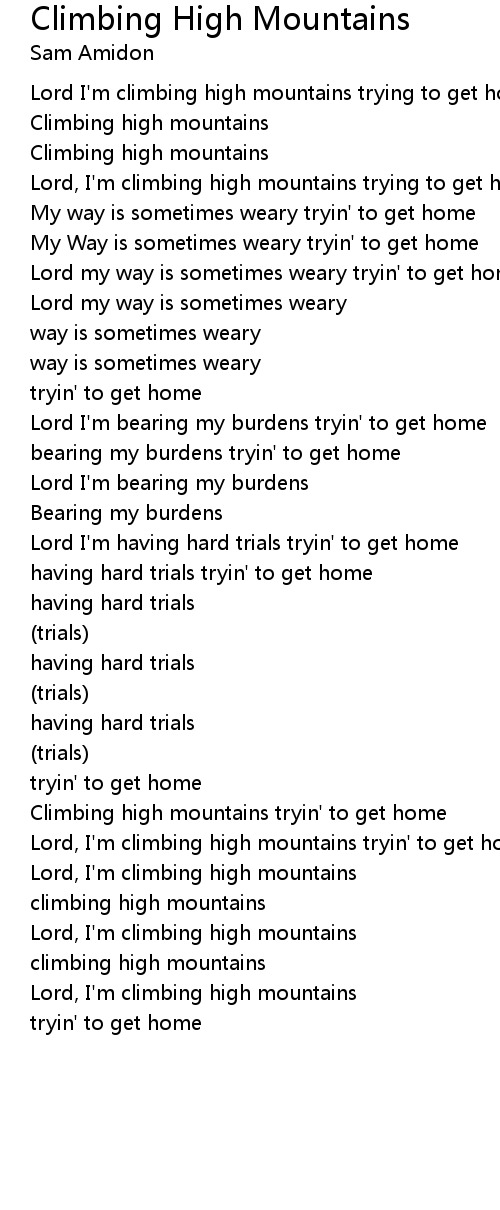 Lord, I'm climbing high mountains trying to get home |