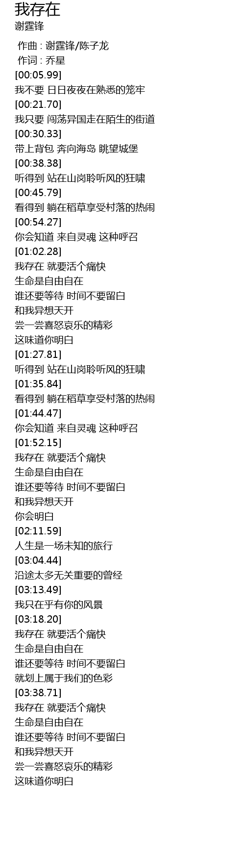 | [03:41.11] | wo cun zai jiu yao huo ge tong kuai |