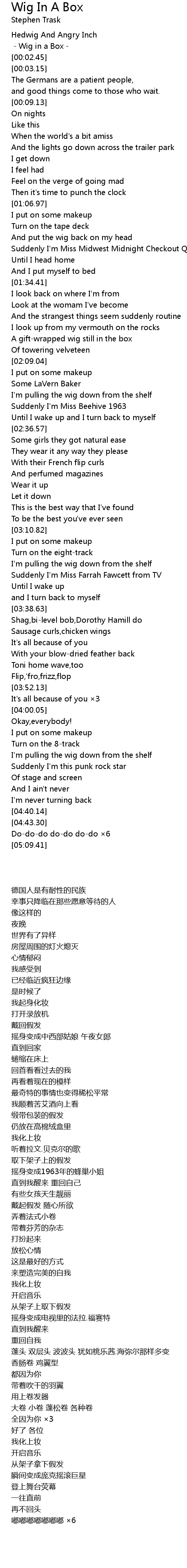 | [00:01.81] | Wig in a Box |