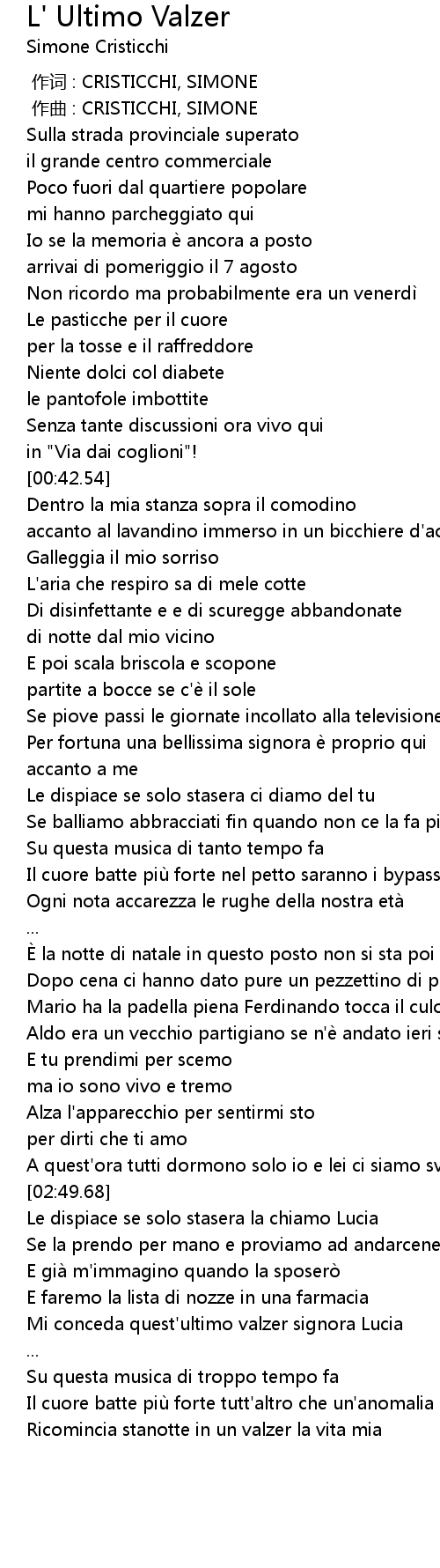 | [03:25.40] | Mi conceda quest' ultimo valzer signora Lucia |