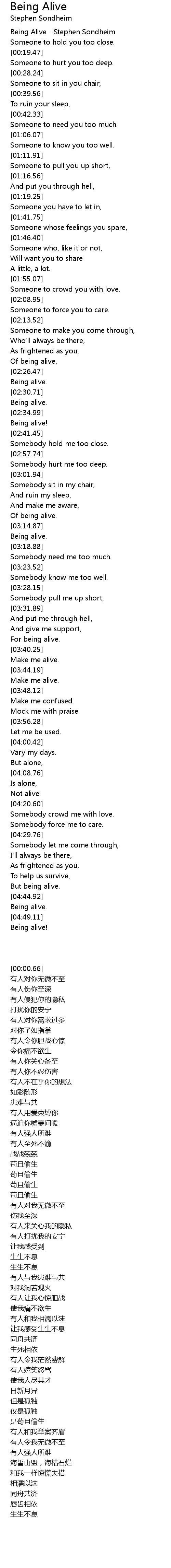 Being Alive - Stephen Sondheim |