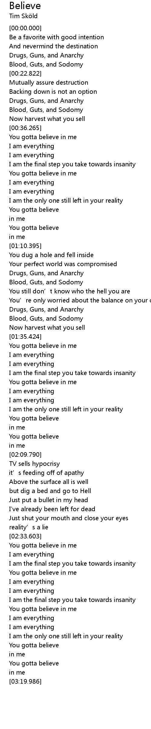 | [02:58.005] | You gotta believe in me |