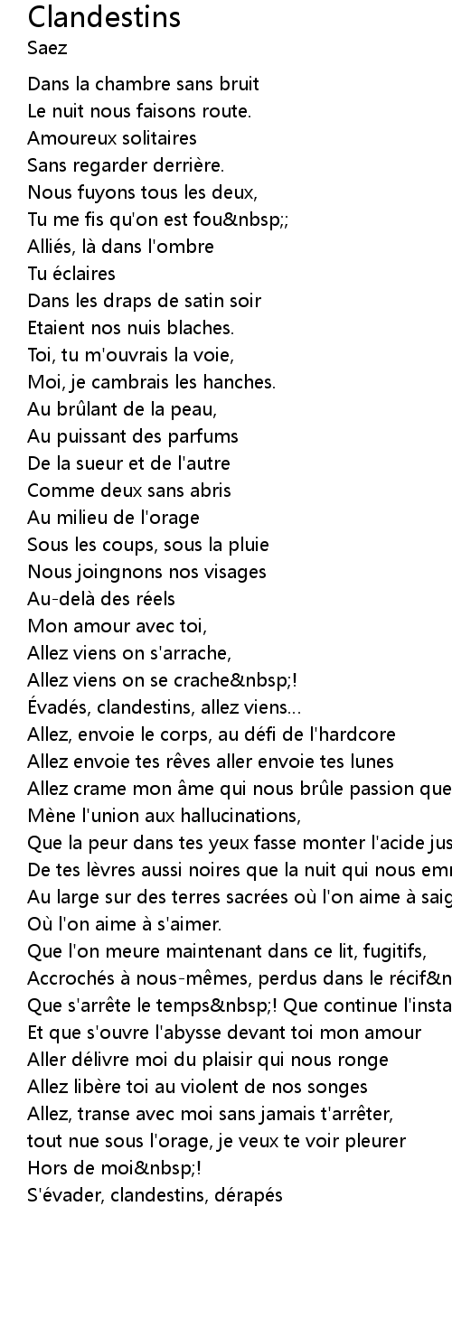 | Allez crame mon me qui nous br le passion que nous | |
