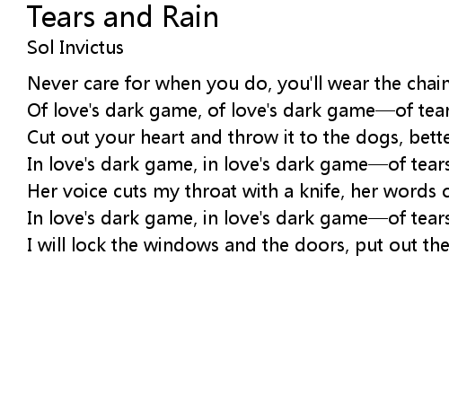 | In love' s dark game, in love' s dark game of tears and rain | |