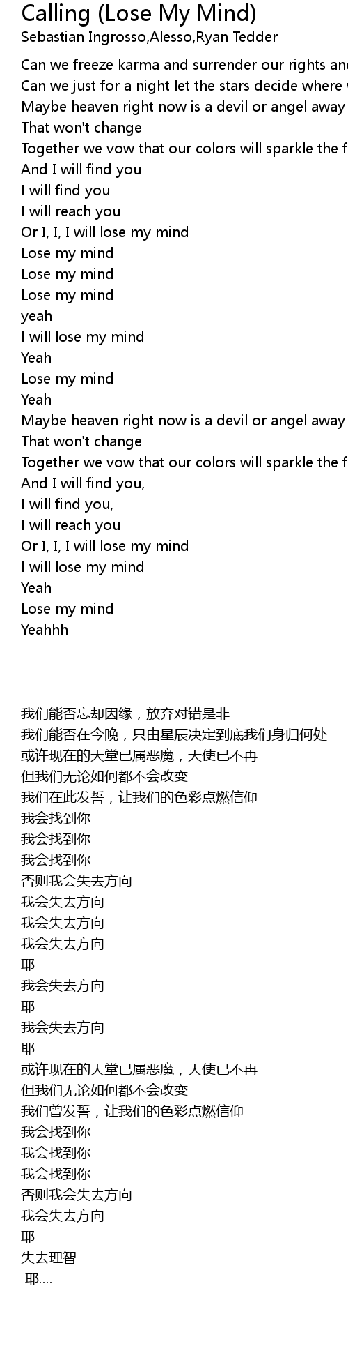 Or I, I, I will lose my mind |