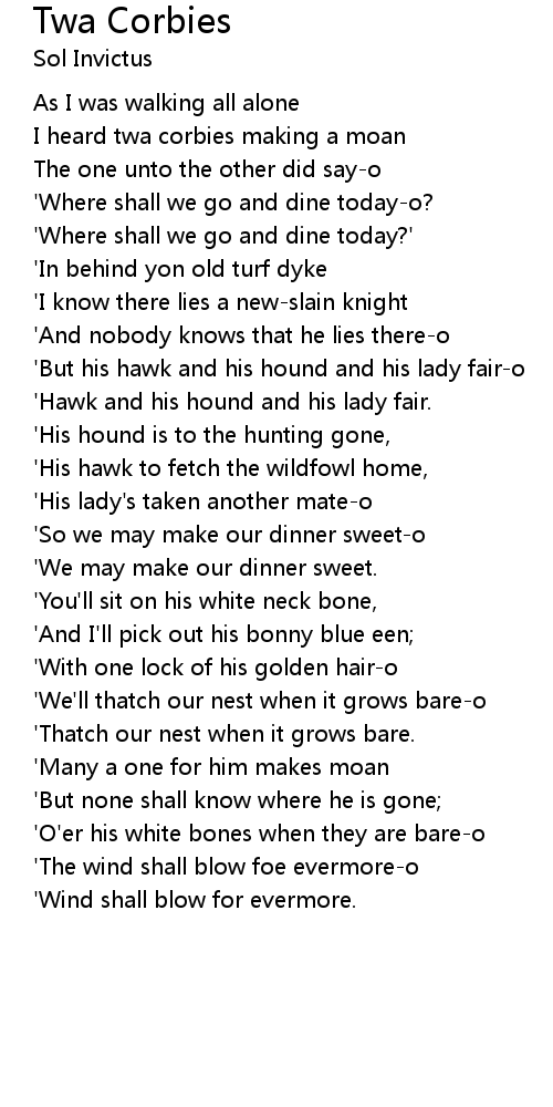 Twa Corbies Lyrics