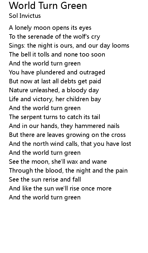And the world turn green |
